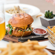 Contemporary hotel with excellent dining options and dedicated stadium transport.
